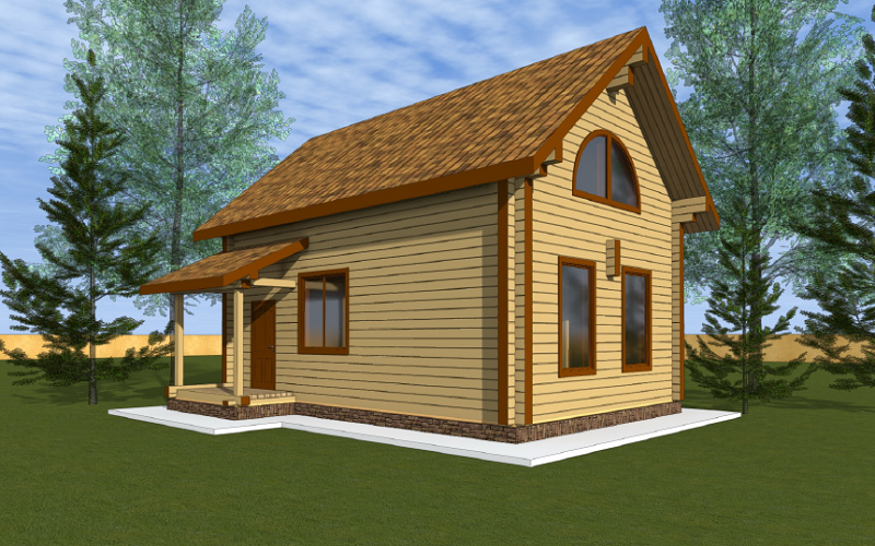 Проект дачного дома из клееного бруса мансардного типа КБ101-2