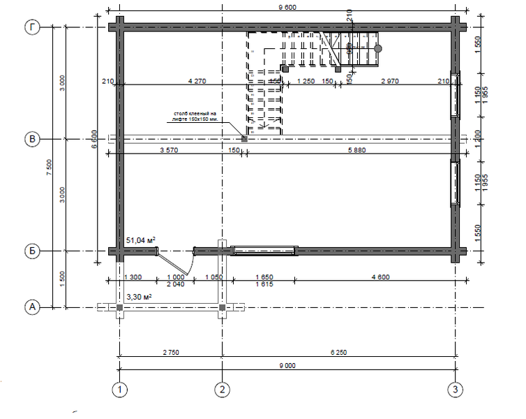 - наружные и внутренние стены из профилированного клееного бруса с запиленными чашами сечением 210х180 мм (австрийский профиль с тройным уплотнением)