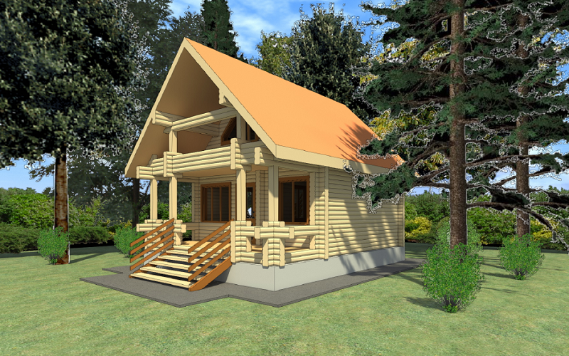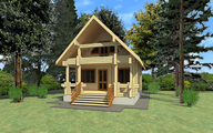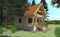 Готовый проект двухэтажной бани из клееного бруса с террасой КББ73