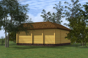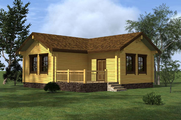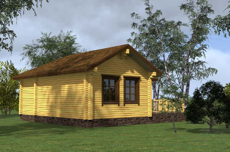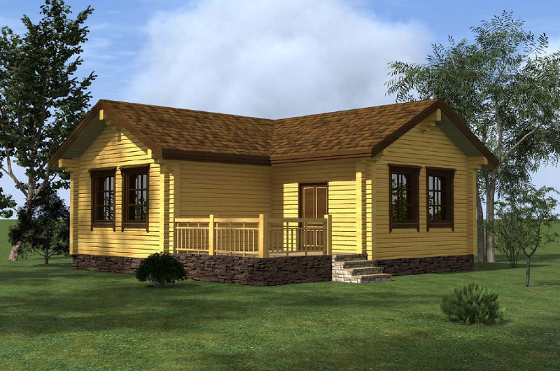 Проект угловой одноэтажной бани из клееного бруса КББ77 с террасой